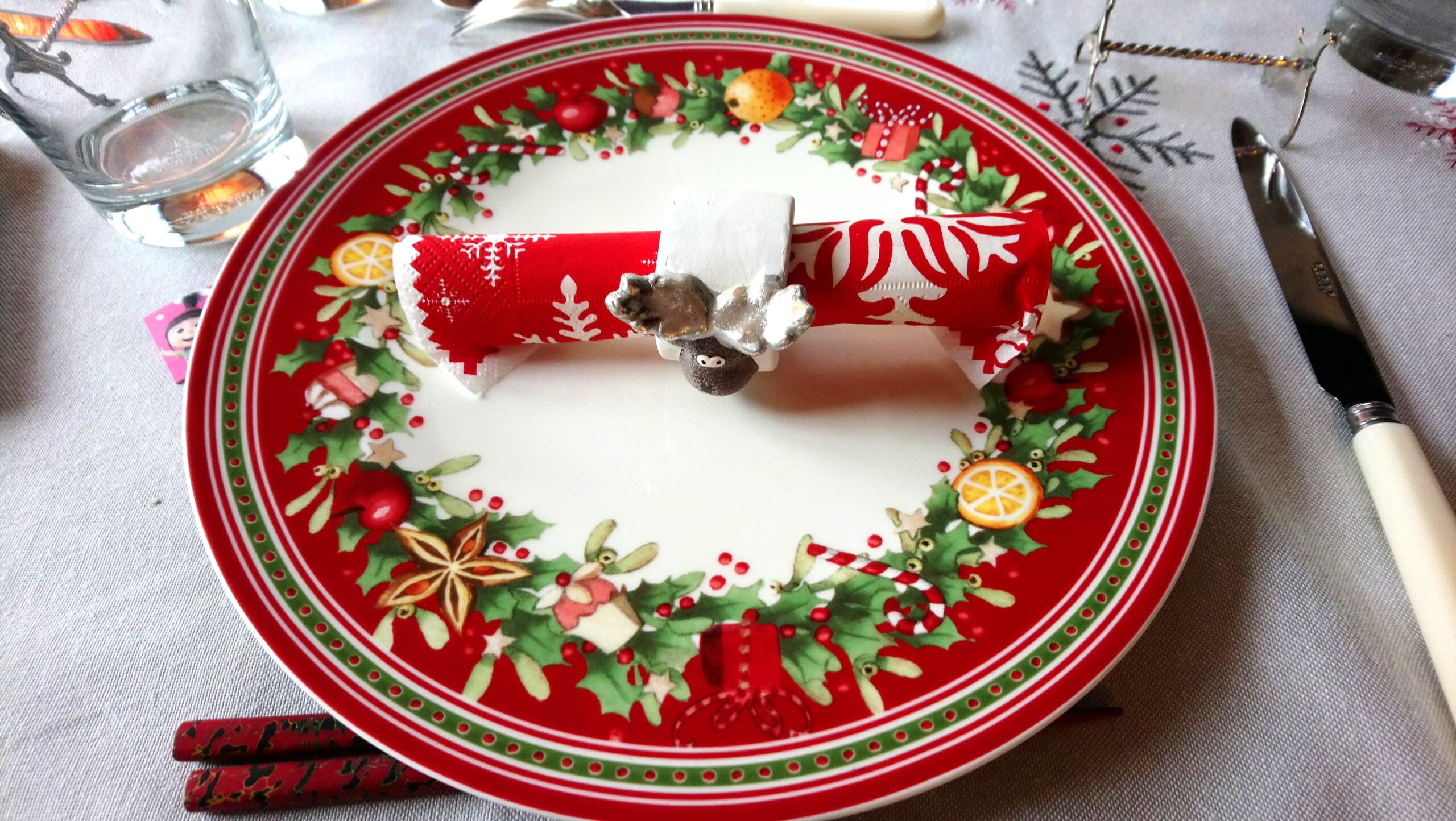 かわいいでしょう? ビレロイ&ボッホは(Villeroy & Boch)のものです。2017年来、うちのノエルはこのお皿と決まっています。楽しかった横浜駐在を終え、2016年にベルサイユに戻って来て、その年のノエルも、お正月も、気合が入らなかったのですよ。でも「これではいかん!」と一念発起し、冬のソルドのときに、このお皿を奮発したのでした。