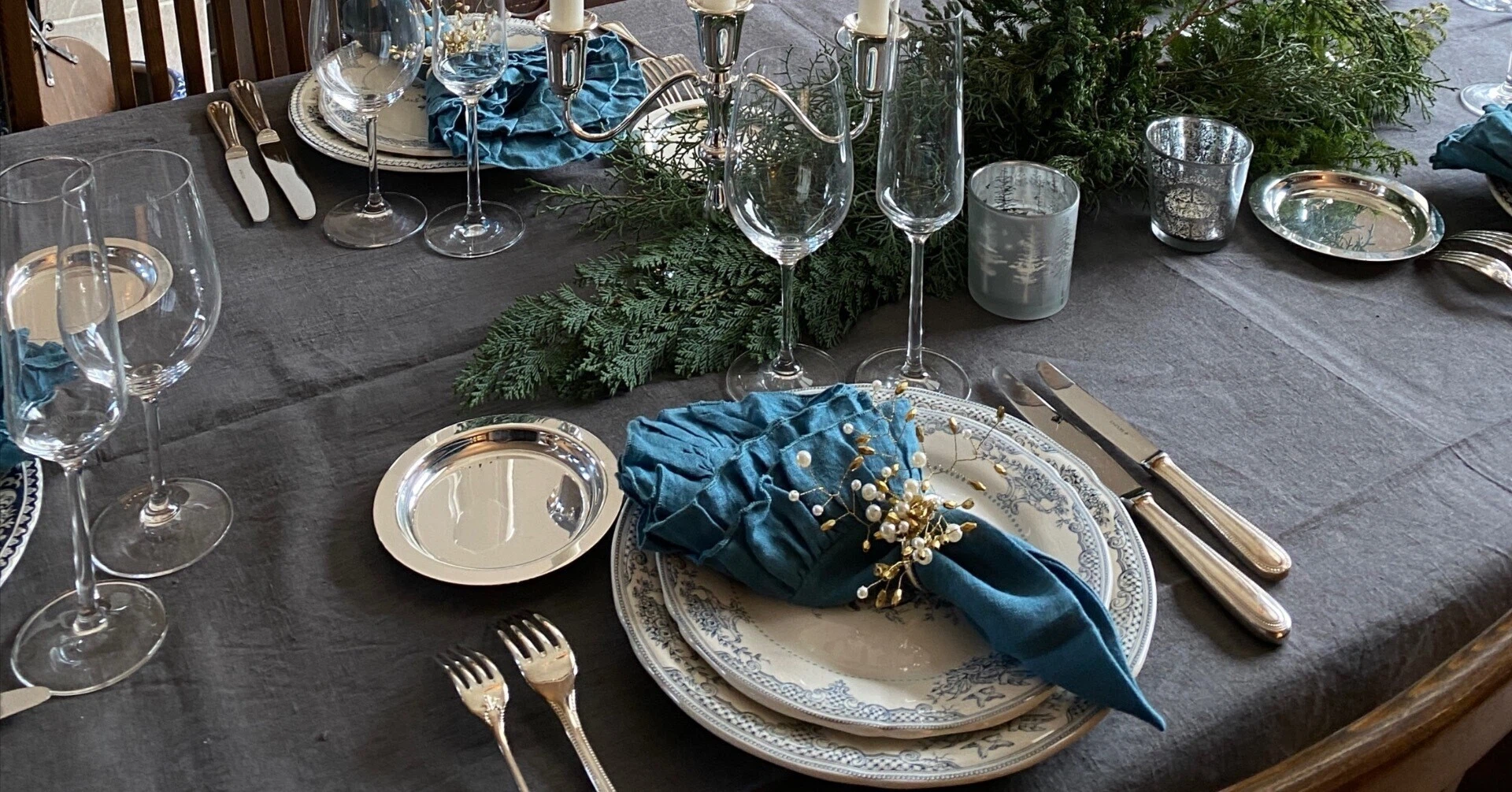 写真のテーブルコーディネートは数年前のクリスマスのテーブルです。グレーとグリーンという大人の色合わせテーブルでその時は落ち着いた気分で過ごしたかったことを思い出します。赤、緑、白、金銀と典型的な明るい気持ちになるクリスマスカラーが好きなときと、大人っぽいシックな色合いが良いときを行ったり来たりしています。